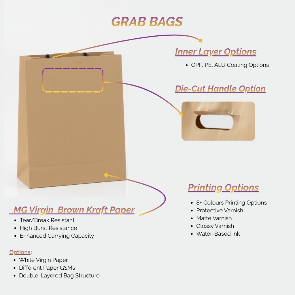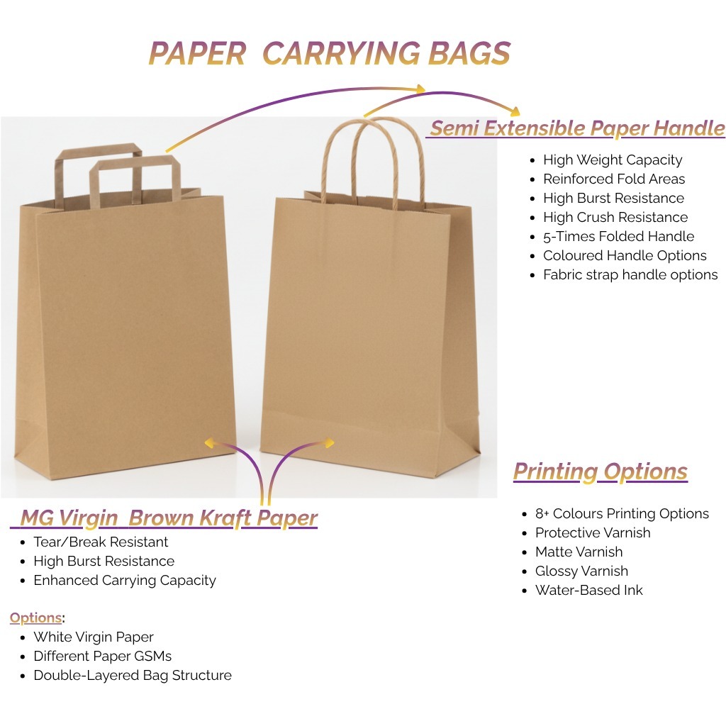 Our flat handle paper bags are produced in various sizes to meet the needs of different sectors, offering: